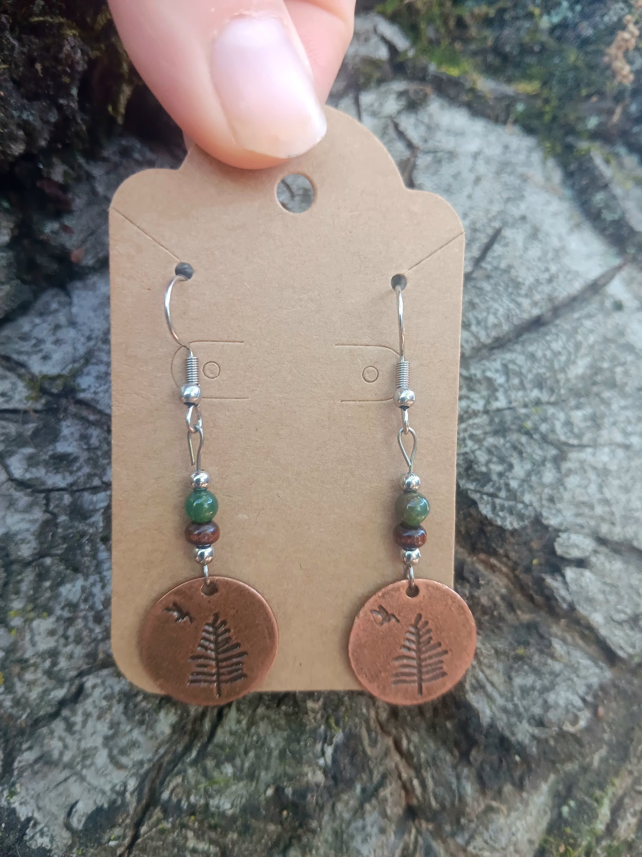 Conspiring Tree Earrings W/ Green Fancy Jasper