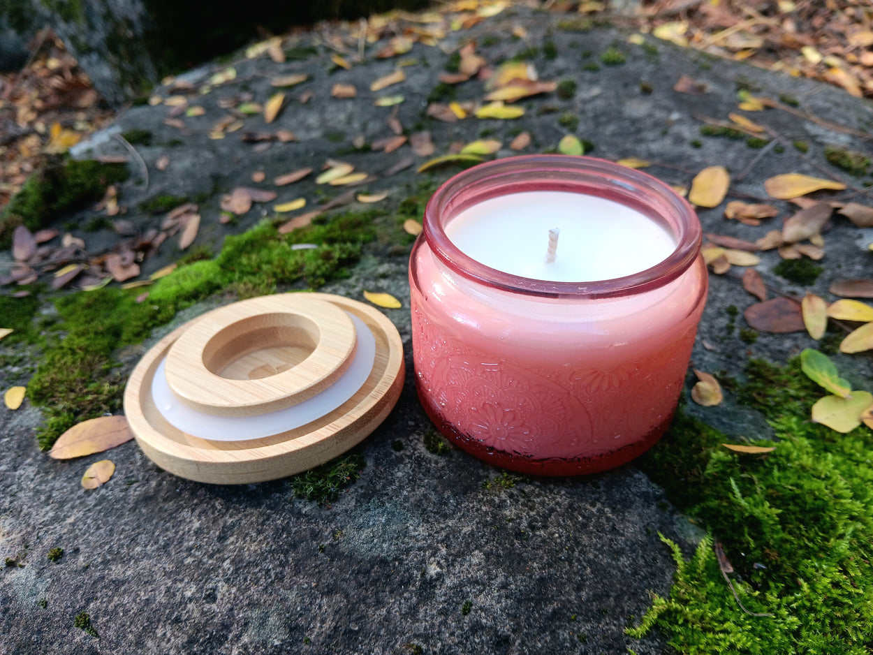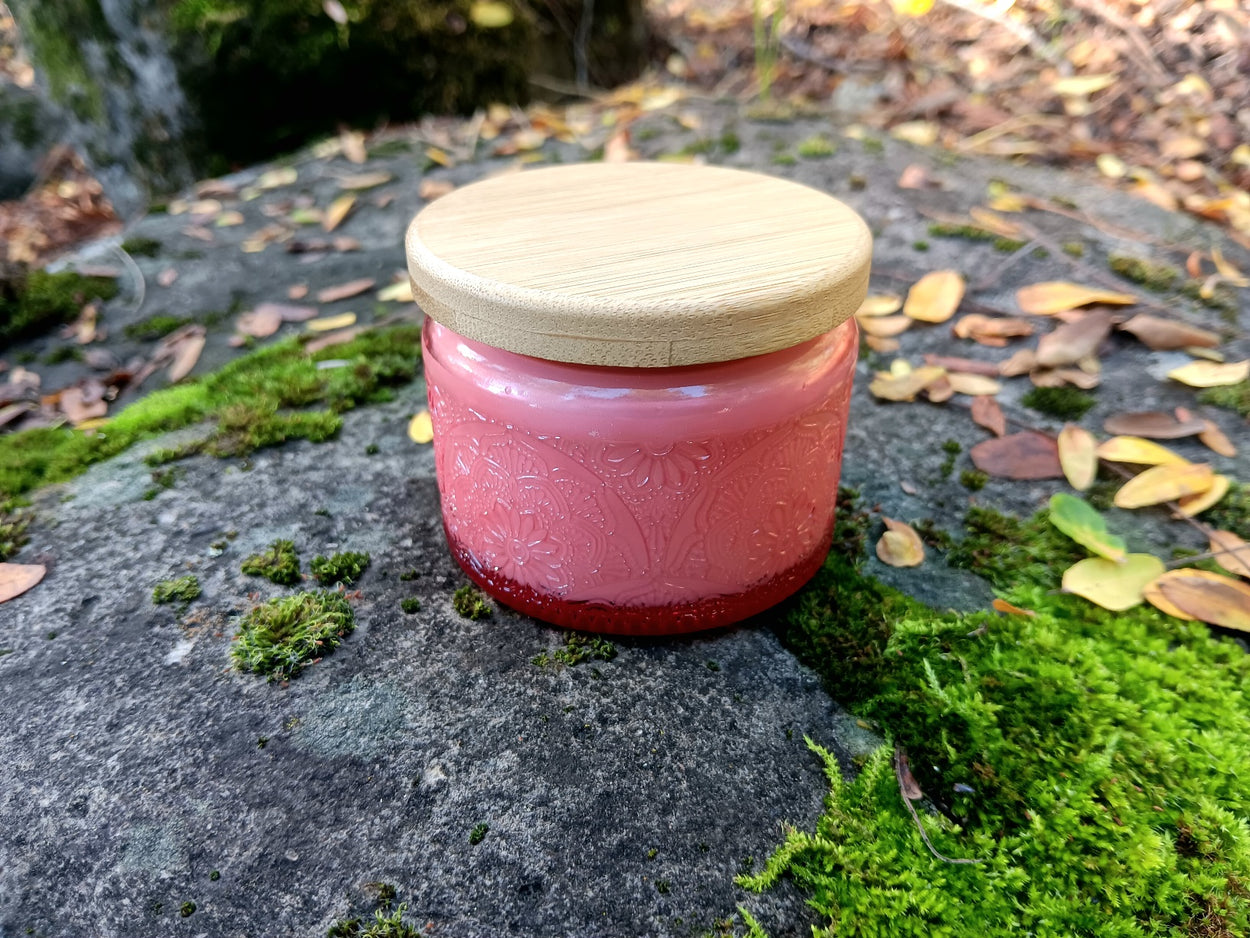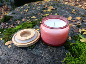 One of our most popular scents, this candle is inspired by gun fights of the old West. With the twirl of his Colt Navy revolver, the scent of smoke and leather wafts through the air, as the outlaw re-holsters his gun. Scent Profile: Campfire Smoke* Antique Leather* White Sandalwood* Oud. Made with coconut blended wax. This scent is phthalate-free, paraben-free, mutagen-free, carcinogen-free and vegan. 3.5 oz, comes in a pinkish-red glass vessel with a wooden lid.