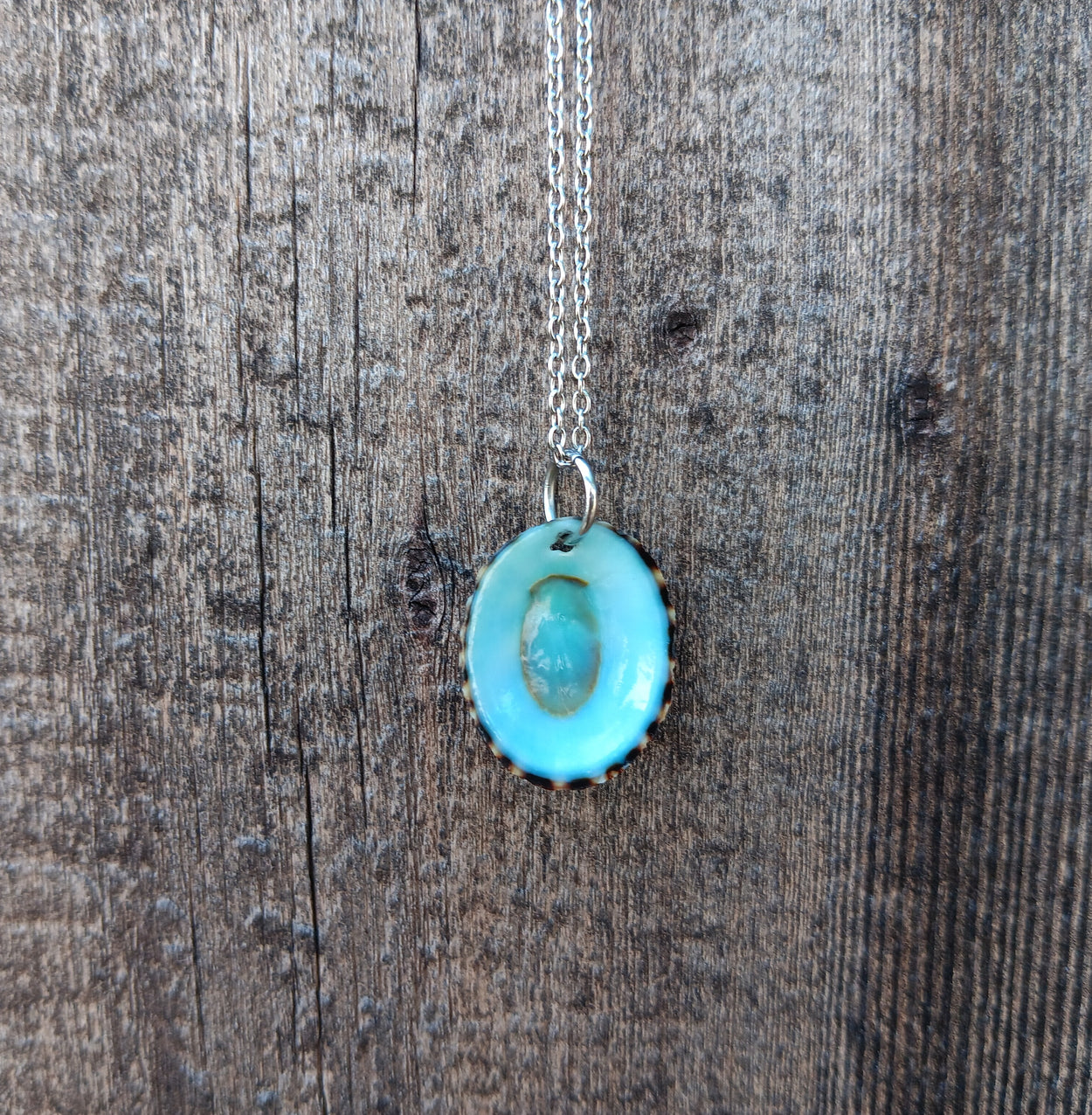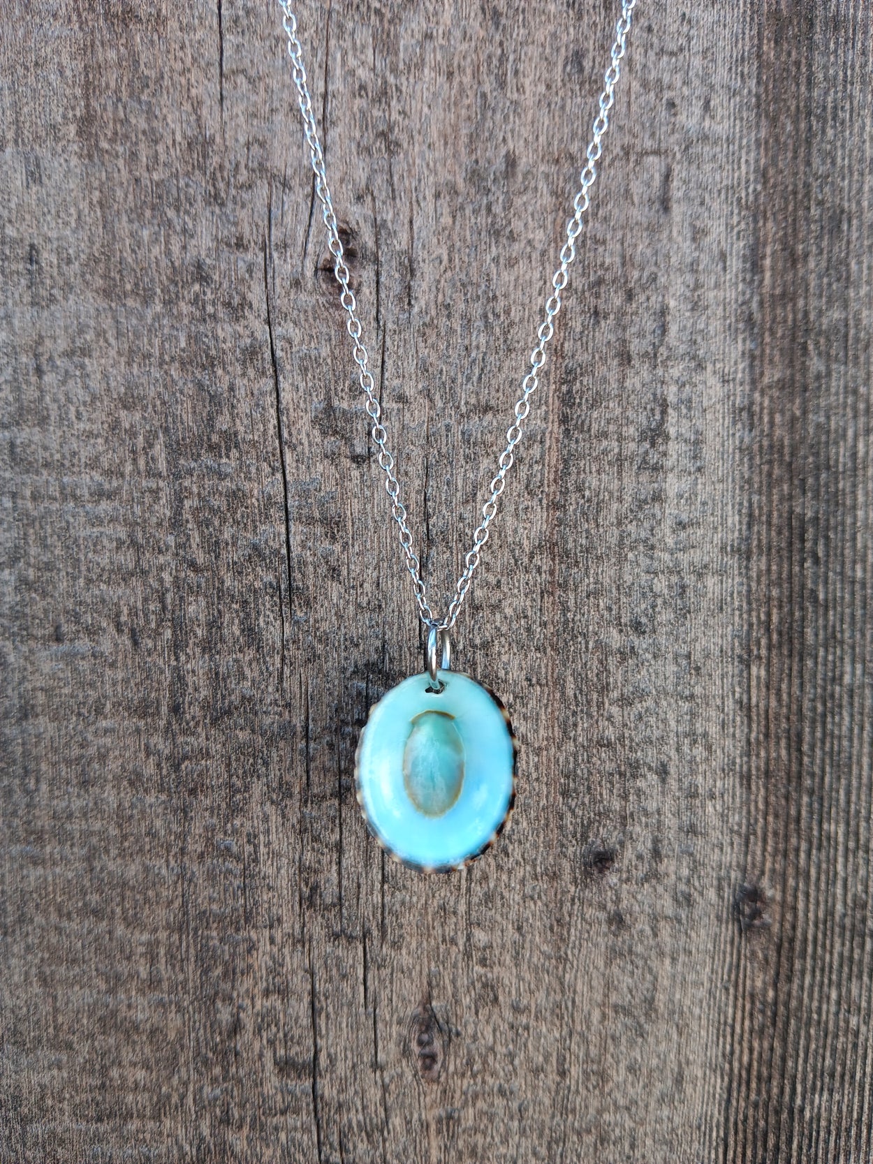 Inspired by our love of creating things from nature and living near the Pacific Ocean, we designed this lovely seashell necklace that comes with a genuine green limpet shell. *Note that the color looks more blue than green.  It comes with an 18' stainless steel chain, with an additional 2' extender (which would extend the necklace to 20').  *Please reach out to us if you would prefer a sterling silver chain for an additional cost or if you'd like a different length chain.  *Very fragile.  We only except returns if the item is broken upon arrival.
