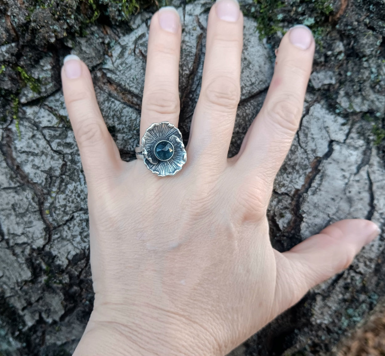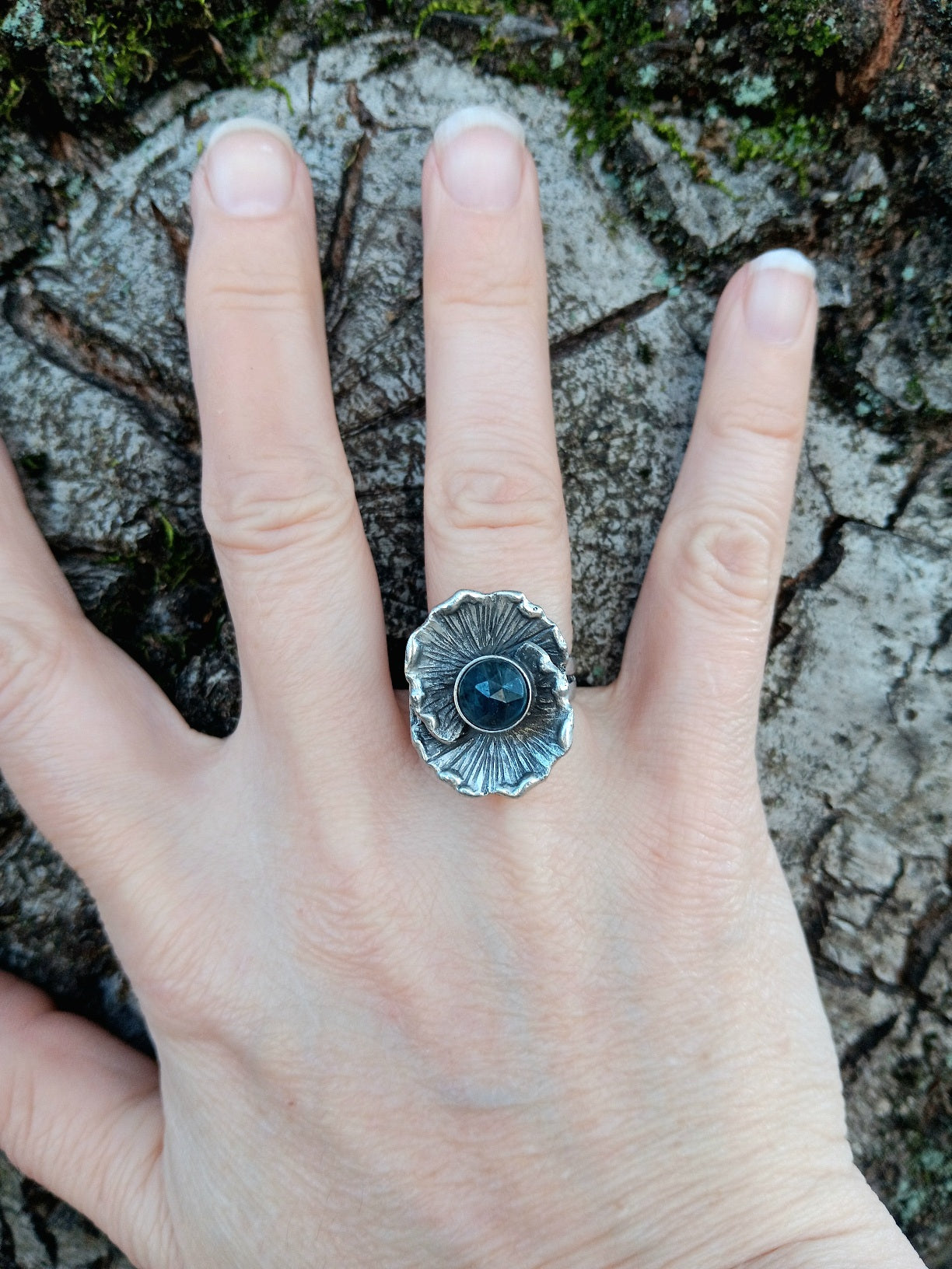 Anemone Cocktail Ring W/ Blue Moss Kyanite