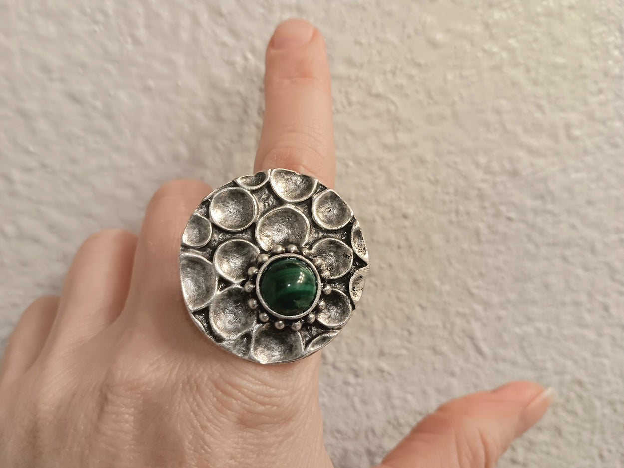 Dahlia Petal Cocktail Ring W/ Malachite Stone