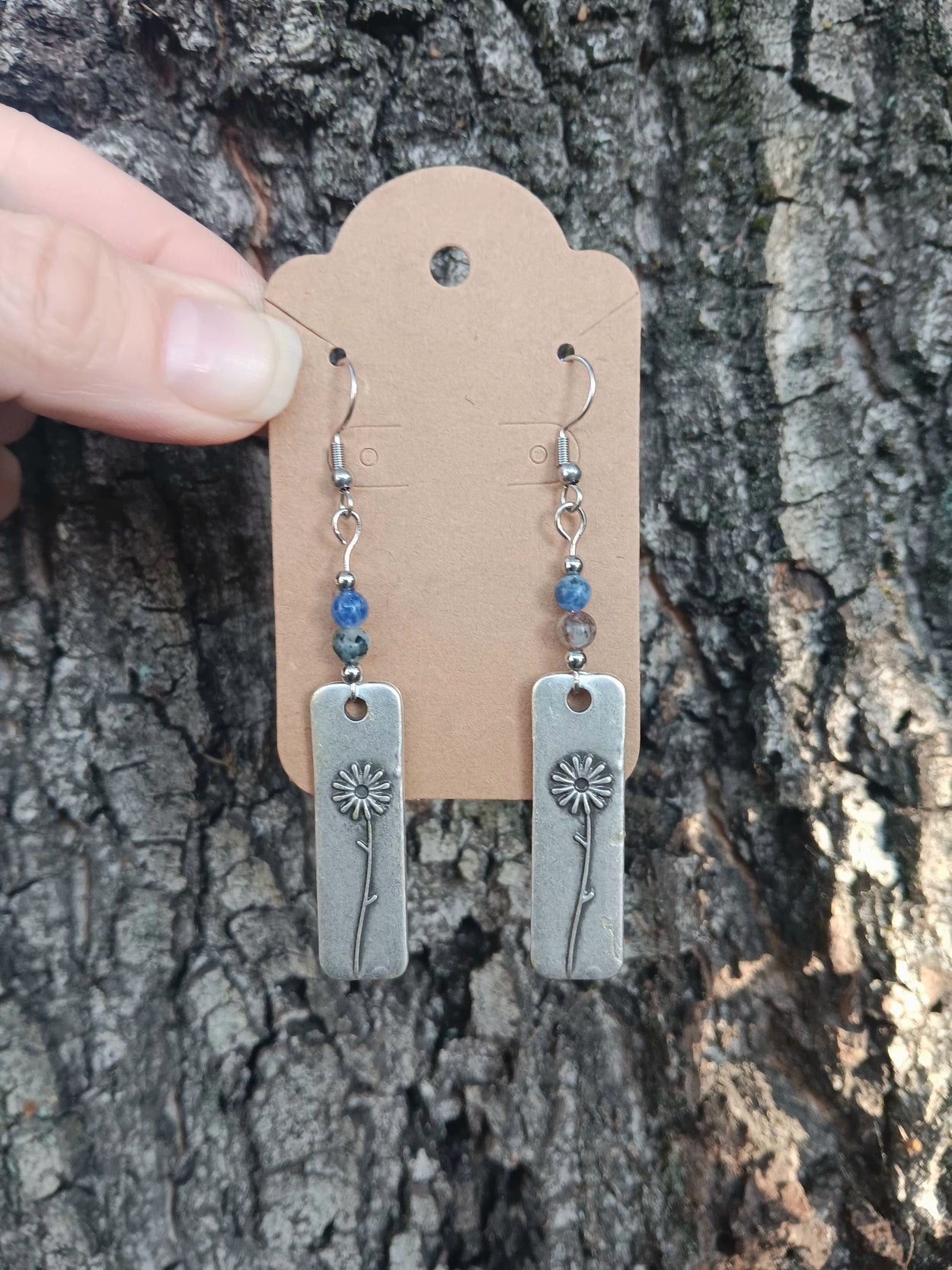 Inspired by nature and a song title (Stems & Flowers by The Chesterfield Kings), these earrings contain a flower motif that we've paired with natural sodalite stone beads to make one feel aligned with mother nature.  The earrings measure appx. 3" in length and are made with stainless steel earring wire.  All of our earrings come with earring backs.
