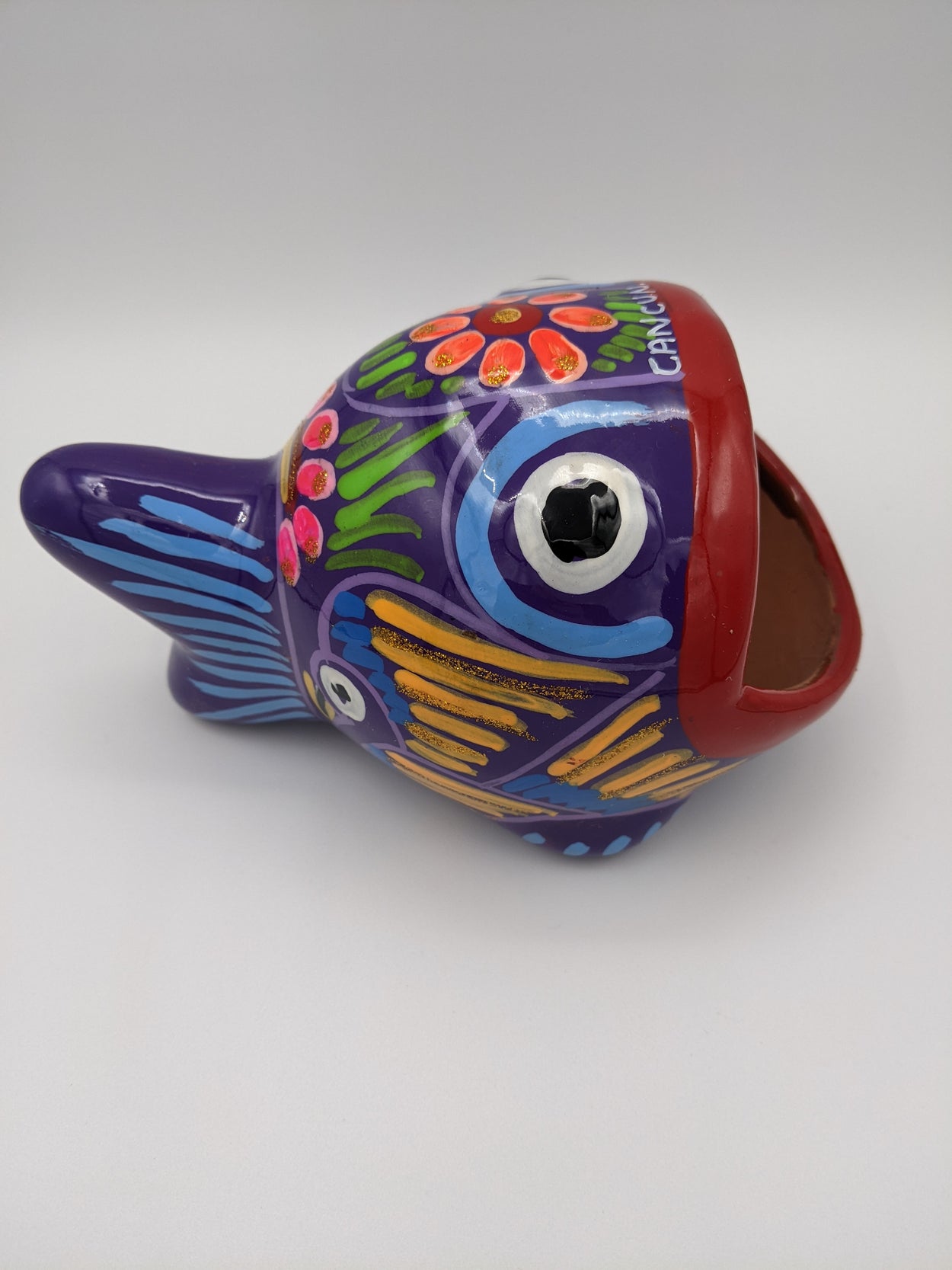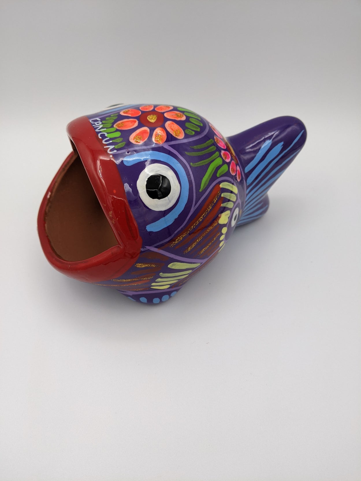 This is a one-of-a-kind, hand-painted fish made by a local artist in Mexico.