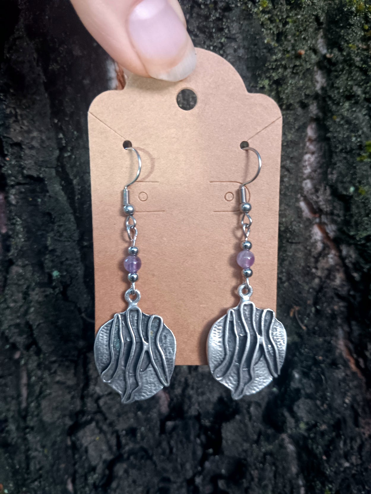 Amethyst is thought to be a protective stone said to alleviate stress and negativity, and strengthen the immune system. We love it for its lovely violet hue. These earrings measure approximately two inches in length and are made with stainless steal earring wire. All of our earrings come with earring backs.