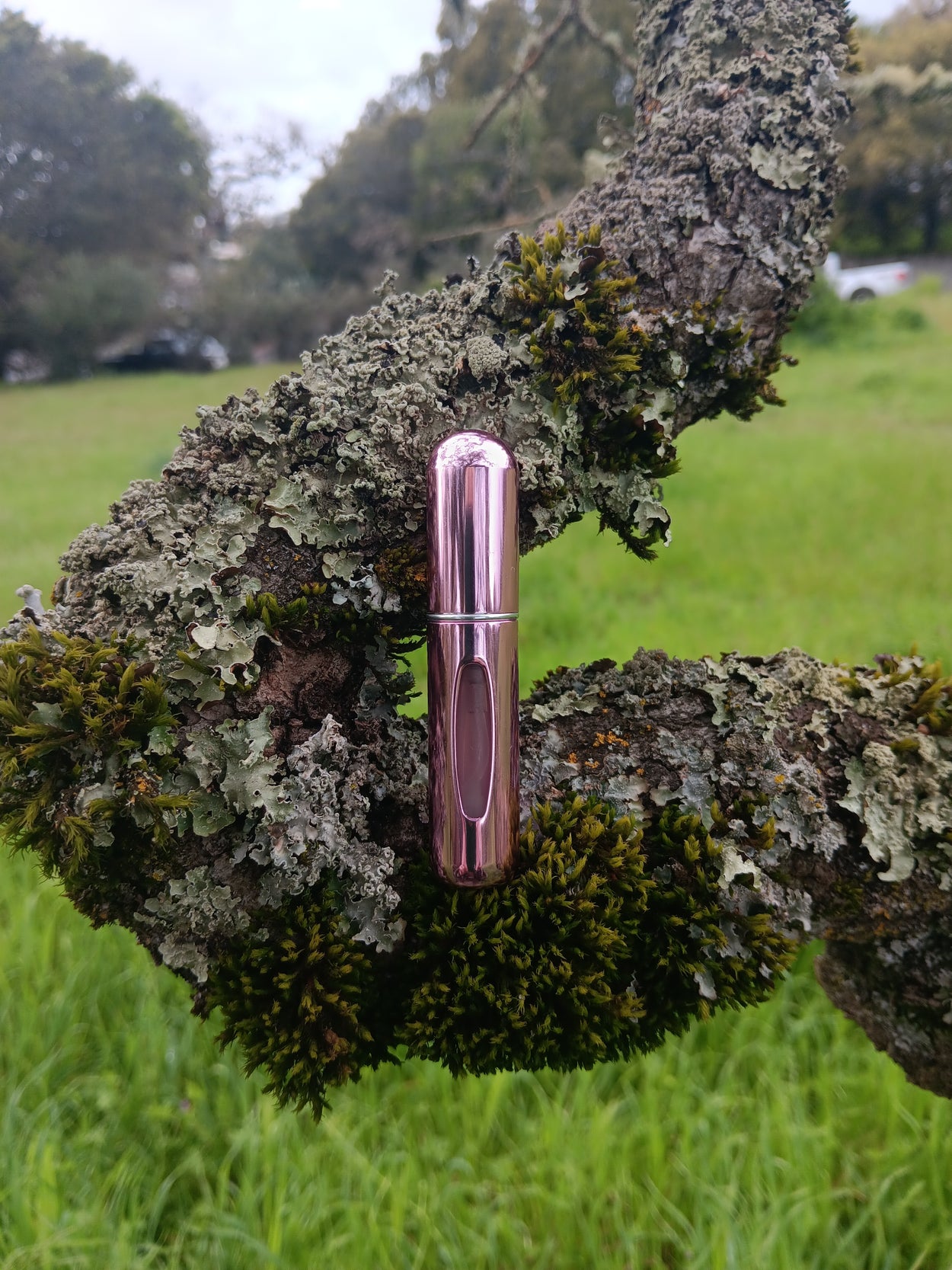 We fell so in love with the scent of our Spaghetti Western candle that we decided to turn it into perfume!  Scent Profile: Blushed Suede* Smoky Guaiacwood* Orris Root* Tobacco Flower.  The 5 ml size is perfect for traveling (small enough to go on an airplane), yet you can get up to 70 sprays out of one bottle. The fragrance is phthalate-free, paraben-free, diacetyl-free, vegan, and cruelty-free.  The perfume base we use is 100% natural, organic, and non-GMO.  *Please note that the fragrance bottle comes in a variety of colors from pink and silver to black and purple.  If there is a particular color you'd like, please message us, and we will do our best to accommodate you, however; due to availability, we can't always guarantee a specific color.  This perfume leans feminine but can be worn by anybody!