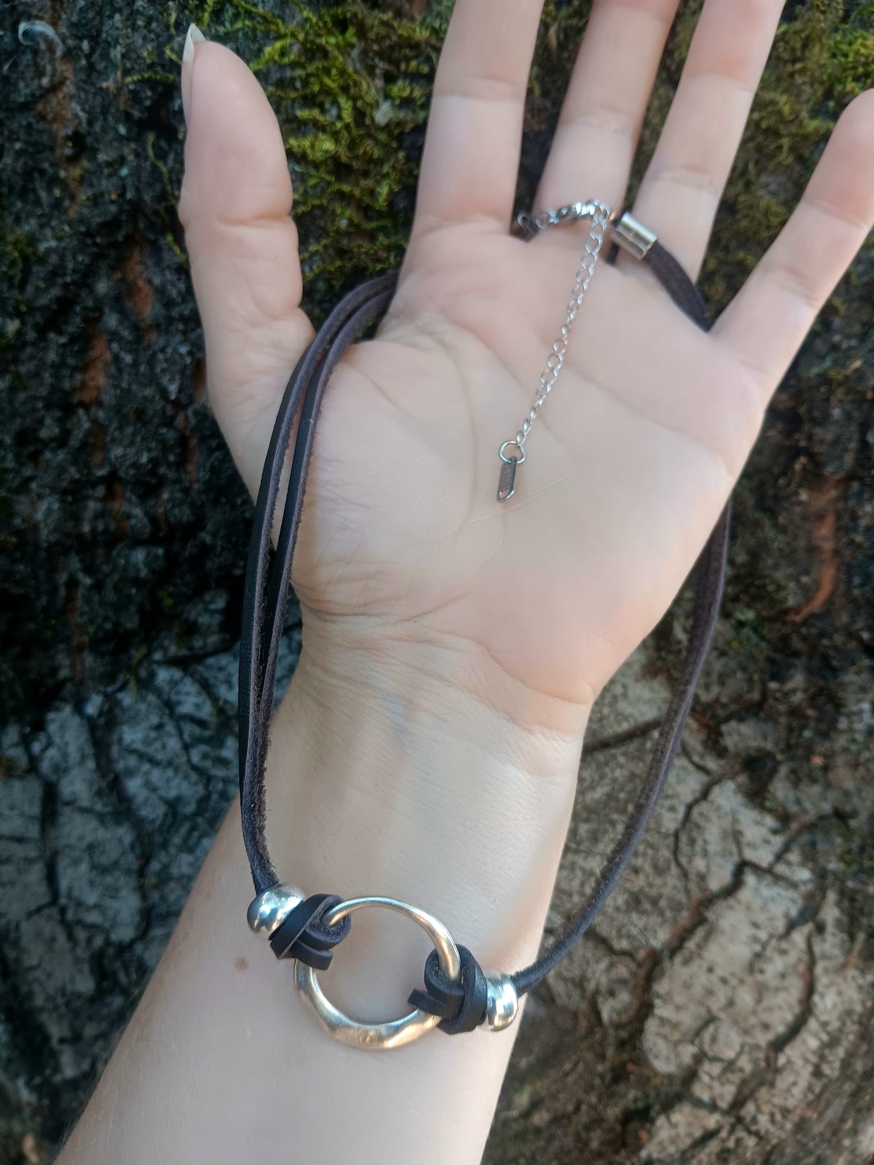 Our handmade Brown Leather Choker is made of real, vintage style, dark brown leather. The necklace measures approximately 16 inches in length and includes an extender chain to bring the total up to 18.50 inches in length.