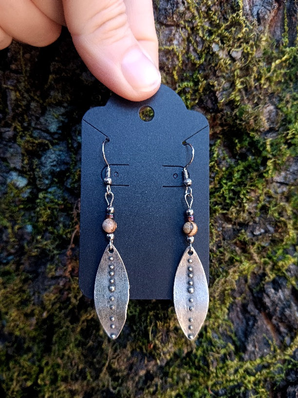 Spotted Leaf Earrings W/ Picture Jasper Stone